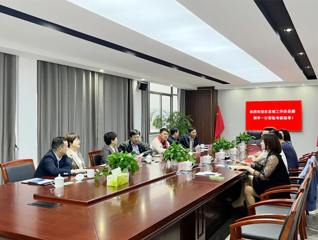 5月11日下午,,,,宣城市人大常委会二级巡视员董家国一行莅临凯时尊龙科技股份有限公司考察调研。。。凯时尊龙董事长丁中建向董家国一行介绍了科技融合文化项目推进情况和企业发展概况。。宣城市日报社党组书记、、、、总编辑王建玲,,宣城市政府副秘书长吴丽云,,,,宣城市公安局副局长洪波,,宣城市科技局副局长程礼奎,,,,宣城市农业农村局副局长丁然,,,,宣城市人民检察院检察委员、、、、检察员陈绍君,,,,央视发现之旅频道《美丽家园》栏目总制片人王大明陪同调研。。。